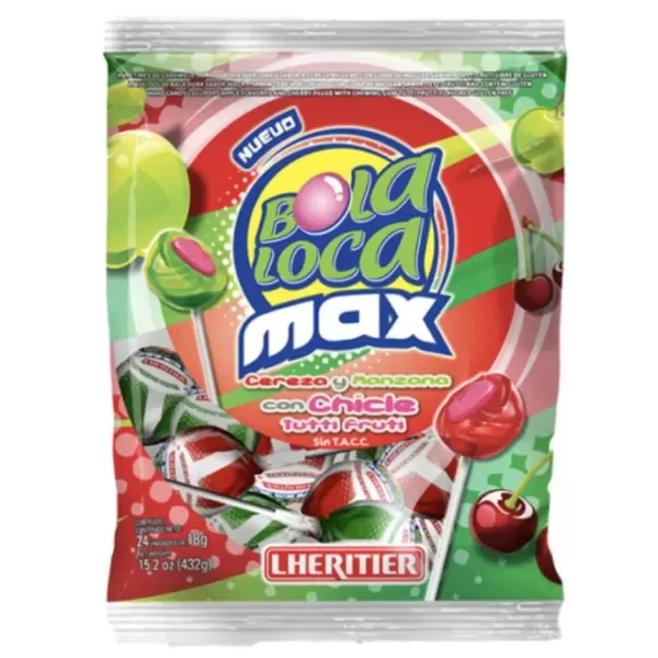 CHUPETIN BOLA LOCA MAX X24U CEREZA MANZANA CON CHICLE